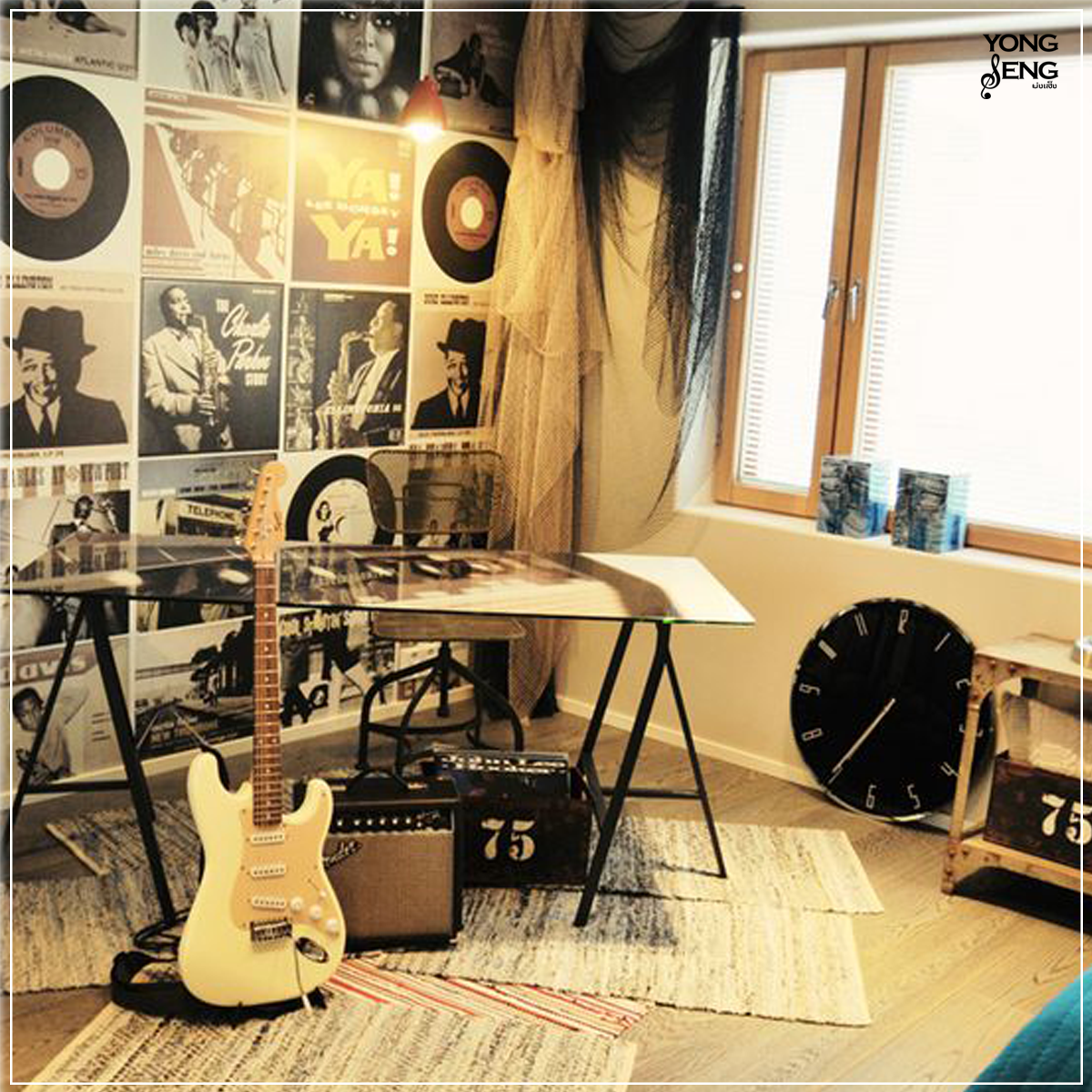 สุดท้ายจะเป็นห้องของนักดนตรีได้ก็ต้องมีเครื่องดนตรีตกแต่งห้องกันด้วย จะแขวนเก๋ๆที่ผนังหรือจะตั้งเท่ๆไว้ที่มุมห้อง ห้องก็จะดูดีมีสไตล์นักดนตรีสุดๆ