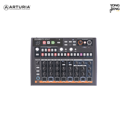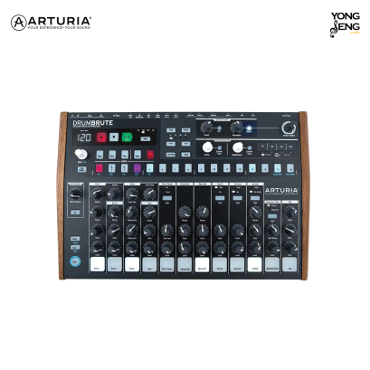 Analog Drum Machine with 10 Drum Sounds, 64-step Pattern Sequencing, Song Mode, and Distortion Effect.