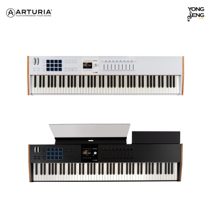Software Specifications: Includes Analog Lab software with 6500+ synth and keyboard sounds Includes Ableton Live Lite Includes UVI Model D Hardware Specifications: 88 note, velocity sensitive keyboard with hybrid synth-piano feel Controllers: 1 clickable encoder, 9 encoders, 9 30mm faders, 6 transport switches, 4 command switches, 1 modulation wheel, 1 pitch bend wheel, 8 touch and pressure-sensitive pads Connectivity: MIDI out, USB, Sustain pedal Functions as a universal MIDI controller Twin-line LCD screen MCU/HUI control compatibility Chord Play mode Perfect Analog Lab integration: Select sounds, browse presets, switch parts, smart-assigned controls. Standalone or plug-in operation: VST, VST3, AU, AAX. Over 6500 TAE® and Phi® powered preset sounds from Arturia’s award-winning V Collection Ableton Live 10 Lite - record, layer, and edit your sounds to create a finished song. UVI Model D - Sample-based software recreation of Steinway classic. Compatible with all major Digital Audio Workstation: Pro Tools, Logic Pro X, FL Studio, Bitwig, Cubase, Ableton Live, Digital Performer, Studio One * * All product names, trademarks and registered trademarks are property of their resp