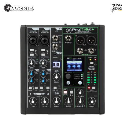 ProFX6v3+ 6-Channel Analog Mixer With Enhanced FX, USB Recording Modes and Bluetooth® ProFX6v3+ is a professional analog mixer and USB-C audio interface with powerful enhancements for studio-quality recordings and live streams. Capture your performance with Onyx preamps and channel EQ, add computer audio via loopback, bring in calls via Bluetooth® and enhance your sound with upgraded GigFX+ effects on a color LCD screen.