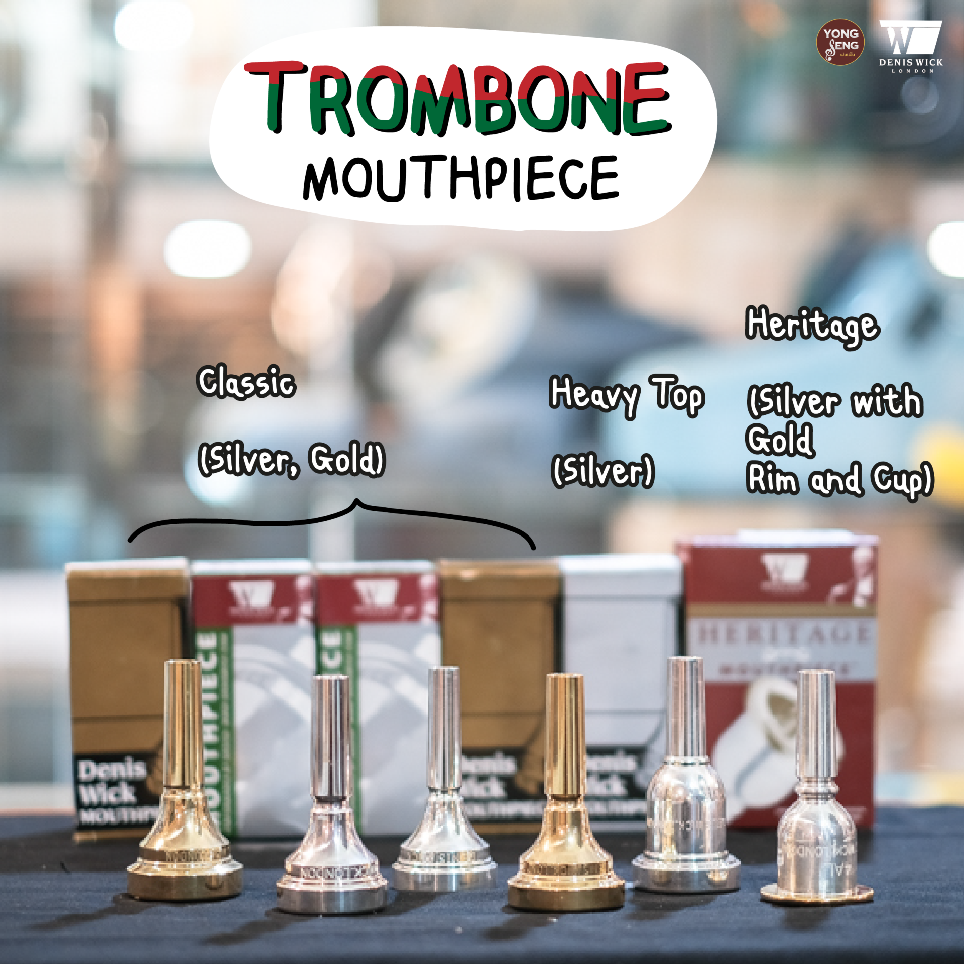 วันนี้แอดจะพาไปดูเม้าท์พีชหรือที่เรียกกันว่าปากเป่ากันดีกว่า ว่าแบร์นของ Denis Wick เนี่ย เค้าผลิตเม้าท์ให้เครื่องไหนบ้างและมีลักษณะหน้าตาชื่อรุ่นเป็นอย่างไร ไปชมกันในภาพได้เล้ยยยยยย