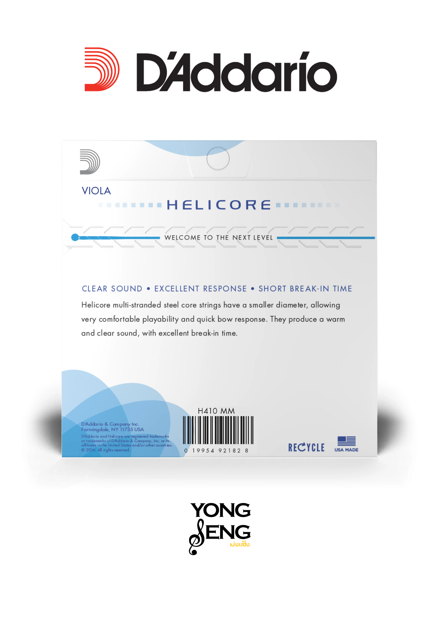 D’Addario Helicore Viola String Set — Medium Scale, Medium Tension (H410 MM)