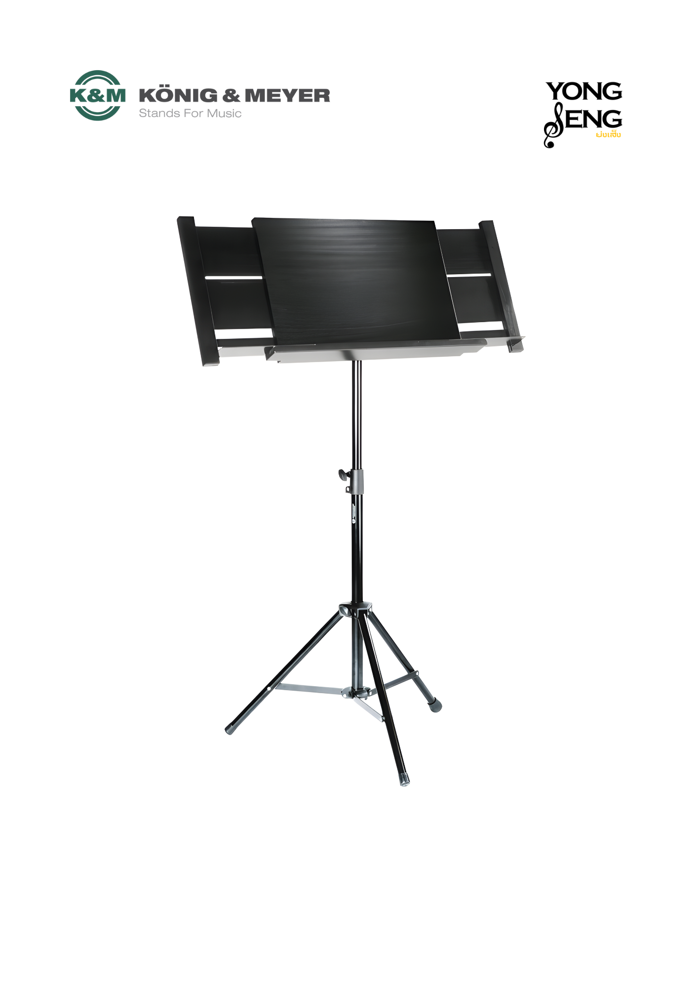 คุณสมบัติเด่น: ปรับสูงได้ประมาณ 690–1160 มม., แผ่นวางขนาด 575 มม. และเมื่อกางปีกยาวสุดราว 875 มม. x 355 มม. เหมาะกับสกอร์ออร์เคสตราเล่มใหญ่ ตั้งมั่นคง เคลื่อนย้ายเป็น 2 ชิ้น สะดวกสำหรับงานเคลื่อนที่หรือติดตั้งประจำสนามซ้อม/เวทีจริง (น้ำหนักราว 6.4–6.7 กก.).